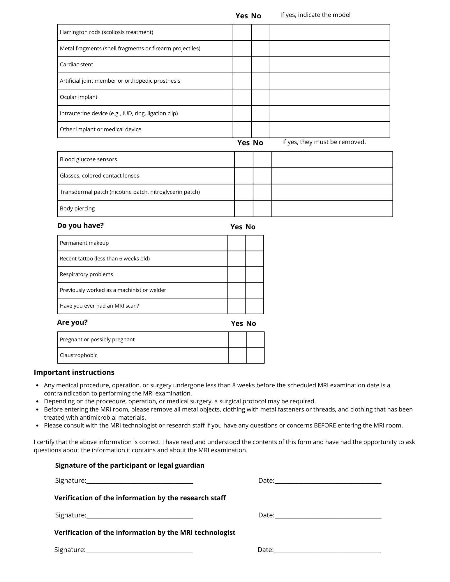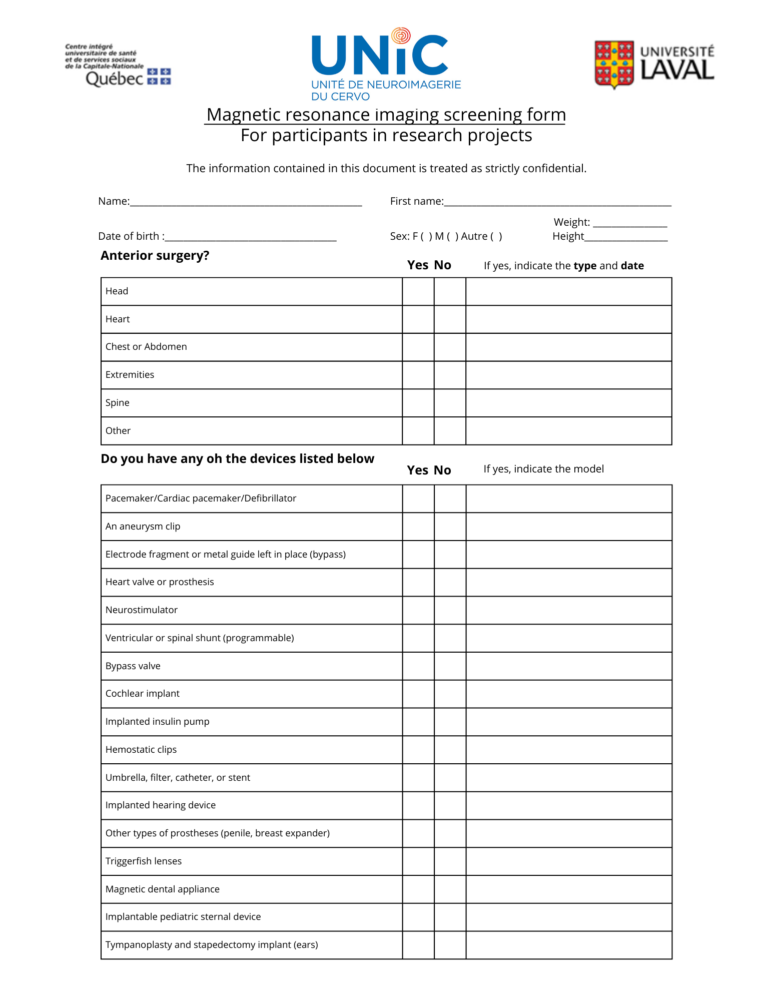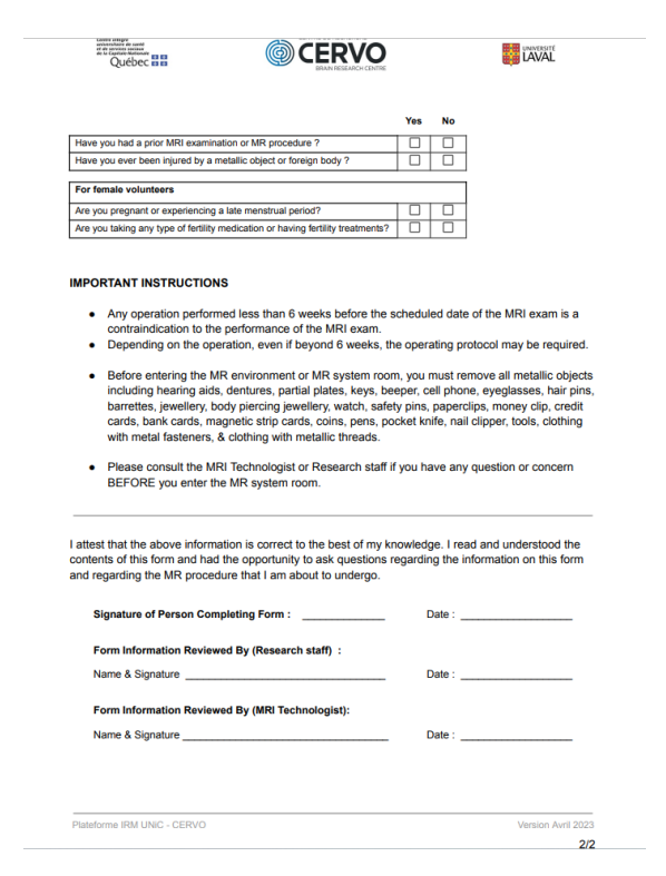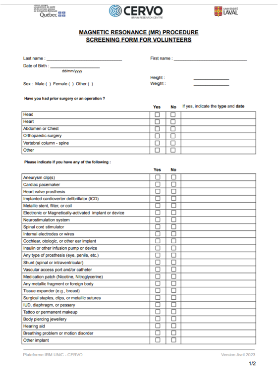 Formulaire de dépistage des contre indications IRM_Participant à un projet